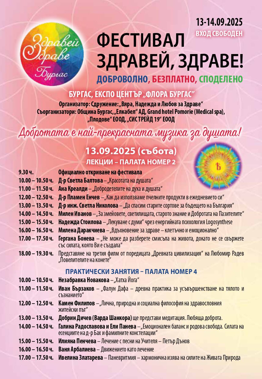 На 13-ти и 14-ти Септември ще се проведе фестивал „Здравей Здраве“ в град Бургас, Експо Център „ФЛОРА БУРГАС“.